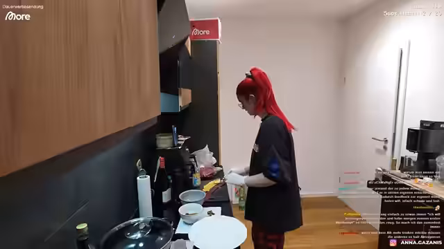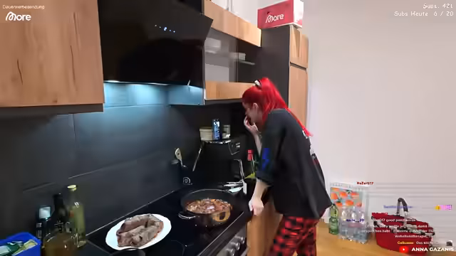 01:29:06Anna färbt die Rouladen mit Zahnstochern zusammen und stellt sie in einen Topf mit Brühe, um sie zu köcheln. Sie reflektiert über den Druck beim Streaming und ihre Ängste, Streams abzubrechen, wenn die Zuschauerzahlen nicht den Erwartungen entsprechen. Das Gespräch wechselt zu verschiedenen Themen, wie einem geplanten gemeinsamen Stream mit ihrem Vater, einer möglichen Gamescom-Teilnahme und persönlichen Wünschen wie finanzielle Unabhängigkeit und ein Eigenheim.