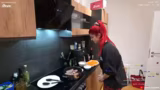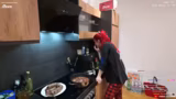 00:46:09Anna beginnt mit dem Kochen der Rinderrouladen. Sie zeigt das aufgetaute Fleisch und bereitet es mit Senf, Gewürzen, Speck, Zwiebeln und Gurken zu. Dabei stehen ihr ihre Hände und ihr Partner Dani zur Seite. Sie schildert die unpraktische und niedrige Küchenzeile und erwähnt, dass dies ihr erstes Kochen von Rouladen ist. Sie ist unsicher bei der Zubereitung und macht einige Fehler, wie zu viel Senf aufzutragen.