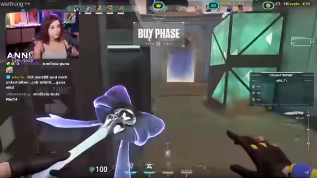 00:50:37Nach mehrmaligen Versuchen gelingt es, das Spiel zu starten. annitheduck spielt mit ihrer Schwester Aliana Duo-Q Valorant. Sie haben nach längerer Pause wieder damit begonnen und sind daher nicht mehr auf dem neuesten Stand. Das erste Spiel verläuft holprig - die Technik ist unzuverlässig, die Kommunikation zwischen Schwestern ist manchmal unkoordiniert, und annitheduck Fehler aufgrund ihrer langen Nägel.