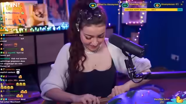 01:59:54Die Streamerin konzentriert sich darauf, ein Sub-Goal für den geplanten ASMR-Stream im Stream-Interface einzurichten. Sie äußert ihre Unsicherheit über die genauen Abonnentenzahlen und die Größe des Zieles. Nachdem sie die Größe und das Farbschema des Ziels an ihr Layout angepasst hat, aktiviert sie den Goal. Sie macht deutlich, dass es sich um einen Entspannungs-Gute-Nacht-ASMR-Stream handelt und betont, dass Zuschauer, denen ASMR nicht gefällt, den Stream einfach auslassen können.