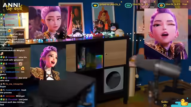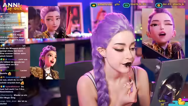 annitheduck widmet sich dem Cosplay-Make-up für Rumi, trotz anfänglicher LAN-Probleme. Eine Abstimmung entscheidet über den Charakter, gefolgt von einer Perückenanprobe mit Herausforderungen. Der Make-up-Prozess umfasst Augenbrauen, Lidschatten, Eyeliner und Wimpern, mit unerwarteten Ergebnissen beim Lippenstift. Abschließend werden Pläne für zukünftige Streams mit UV-Make-up vorgestellt.