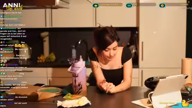 00:37:33Anni verweist auf ihre Equipment-Liste auf Amazon, wo ihre Streaming-Ausrüstung verlinkt ist, einschließlich der Twinkly-Lichterkette. Sie bittet darum, den Link im Chat abzukürzen. Auf die Frage nach ihrem PC und den verbauten Teilen verweist sie auf ein älteres Video auf ihrem Hauptkanal, in dem sie ihren Feenwald-PC gebaut hat. Momentan kommen keine neuen Videos auf ihrem Hauptkanal, da sie überfordert ist, plant aber, kürzere Vlogs auf Instagram und TikTok zu veröffentlichen. Sie fand die Idee gut, dass ihre nächtlichen Storys auf Instagram als Content-Bettgeflüster wahrgenommen werden und dass es sich anfühlt, als würde man in Facetime zusammensitzen. Anni erwähnt, dass sie nicht auf Messen geht, da sie froh ist, ihre Wohnung nicht verlassen zu müssen.