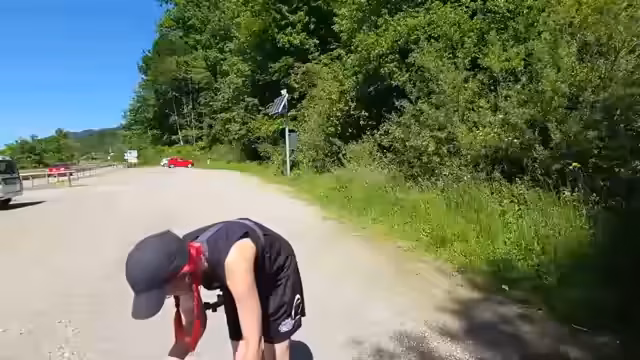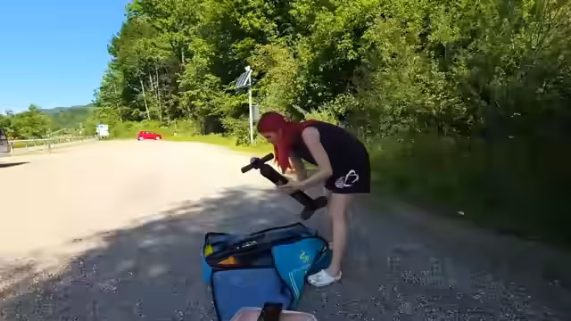 00:02:17Die Streamerin erreicht den Großen Alpsee und stellt fest, dass der See sehr leer ist und kaum andere Menschen anwesend sind. Sie parkt in einem schattigen Platz und beginnt, ihr eigenes Stand-Up-Paddleboard aufzublasen, was sie als etwas aufwändig und aus ihrer Comfort Zone heraus beschreibt. Dabei erwähnt sie auch, dass Jasmin, mit der sie sonst paddelt, nicht dabei ist und sie sich auf den Alleingang freut.