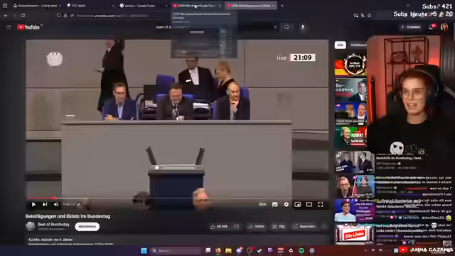 02:56:54Die Streamerin erwähnt Steuerbord, eine App für die Steuererklärung, und erklärt, wie man damit Geld vom Finanzamt zurückbekommen kann. Sie geht auf die Frage ein, wo man sparen könnte, und stellt fest, dass es kurzfristig wenig Spielraum gibt. Sie erwähnt das Bürgergeld, die Unterstützung der Ukraine und die Rente als große Ausgabeposten. Die Streamerin zitiert Bofinger, der sagt, dass das Land mit einer Schuldenbremse nicht regierbar sein wird. Sie wettet darauf, dass es in den nächsten Jahren eine Reform der Schuldenbremse geben wird. Sie schlägt einen Reifenwechsel-Stream vor und erwähnt ihr neues Auto, einen Peugeot 308 GT. Die Streamerin erzählt von einem TikTok-Reel, in dem sie die Leute gefragt hat, was sie für ein Auto fährt. Sie findet schwarze Autos "böse und sexy". Sie erwähnt, dass sich Angela Merkel und der ehemalige Finanzminister Steinbrück mittlerweile für Reformen der Schuldenbremse aussprechen.