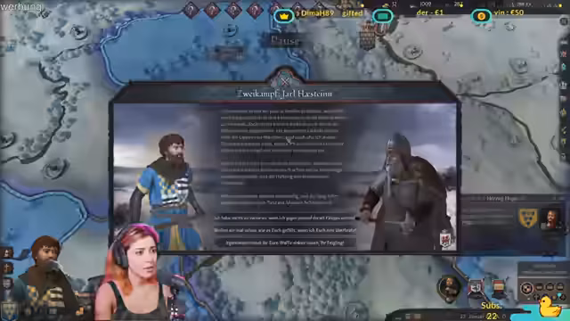 01:40:55Es beginnt mit dem Versuch, einen Charakter zu beeinflussen, der jedoch ablehnend reagiert. Katholische Doktrinen verhindern einen Austausch, was die Situation zusätzlich erschwert. Hohe Schulden belasten die Finanzen erheblich. Die vielen Geschwister werden erwähnt, und es wird festgestellt, dass ein Sohn im Gefängnis sitzt. Es wird versucht, ihn freizukaufen, doch die Mittel sind begrenzt. Ein neuer Sohn wird geboren und erhält den Namen Philipp. Es wird überlegt, wie man den gefangenen Sohn zurückbekommt, notfalls durch Geiselaustausch, obwohl man ungern eines der Kinder hergibt. Ein Komplott am Hof wird aufgedeckt, und es stellt sich die Frage, warum der Sohn überhaupt im Gefängnis ist, da er erst vier Jahre alt ist. Die finanzielle Lage ist weiterhin angespannt, und es wird nach Wegen gesucht, die Schulden zu begleichen. Es wird versucht, Kontrolle in Gemeinden zu gewinnen, insbesondere in Chartres. Ein Bündnis wird ausgehandelt, und es wird die Möglichkeit erwogen, einen Bruder zu töten, um die Erbfolge zu sichern. Die finanzielle Situation wird als äußerst schlecht beschrieben, und es wird der Rat gegeben, Ausgaben zu reduzieren und Gold vom Glaubensoberhaupt zu erbitten, was sich jedoch als schwierig erweist, da der Papst nicht geneigt ist zu helfen.