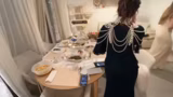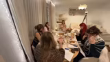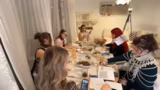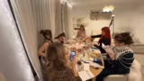 00:47:57Das Dinner beginnt mit den Vorspeisen, darunter Zwiebelsuppe, kleine Blätterteig-Käse-Häppchen und Preiselbeer-Chips. Während des Servierens und während des Essens gibt es organisatorische und technische Absprachen. Die Kamera wird so positioniert, dass alle Teilnehmer gut zu sehen sind und die Namenstafeln gut lesbar sind. Wichtig ist auch die Kommunikation, da jeder seine Rolle beibehalten und die Identität des Mörders geheim halten muss. Es werden Getränke wie Sekt, alkoholfreier Sekt und Robbie Bubbles ausgeschenkt, was zu einer lustigen Situation führt, als eine Flasche umfällt.