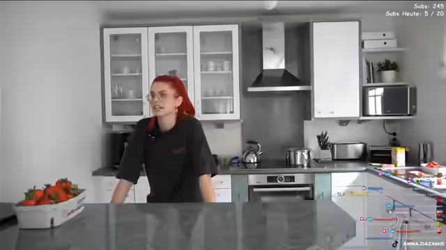 01:11:44Der Kuchen kommt für 20 Minuten in den vorgeheizten Ofen. Währenddesses teilt die Streamerin persönliche Anekdoten und plant zukünftige Aktivitäten. Nachdem der Kuchen herausgenommen wird, muss er zunächst abkühlen. Die Streamerin beginnt, die Erdbeeren vorzubereiten, während sie sich über die hohen Preise für Erdbeeren und negative Einkaufserlebnisse bei Rewe beklagt.