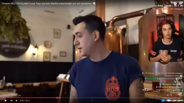 04:20:28Nach dem erfolgreichen ersten Teil der Tour in Heidelberg beginnt die Fahrt nach Regensburg, die etwa drei Stunden dauert. Die Streamerin äußert sich dabei über die Anstrengung langer Fahrten und teilt Gedanken über Essgewohnheiten und den Umgang mit übergroßen Portionen. Sie checken im Novo Hotel in Regensburg ein und planen für den nächsten Tag einen Besuch in einem Brauhaus. Die Ankunft im Hotel wird genutzt, um auf Instagram nach Tipps für die beste Currywurst der Stadt zu fragen.