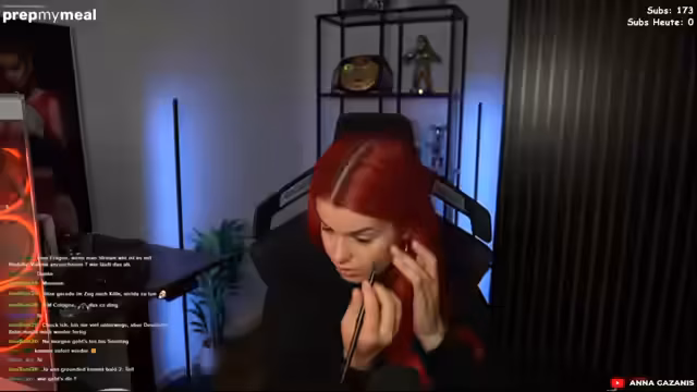 00:07:32Die Streamerin thematisiert ihre Unzufriedenheit mit ihrem aktuellen Gaming-Setup und plant, ein neues zu beschaffen. Im Zusammenhang mit ihrer jetzigen Umgebung kritisiert sie ihre dunkle Küche, die sich nicht für Kochstreams eignet, und denkt über einen Umzug oder sogar Hausbau nach. Sie spricht über ihre Partnerschaft mit einer Make-up-Marke und ihren Plan, auf der Gamescom anzutreten, ohne jedoch Meet & Greets zu veranstalten, da sie Angst davor hat.