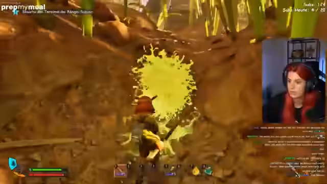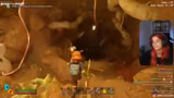 02:18:08Die Streamerin gerät in einen dunklen Höhleneingang und ist überfordert, da sie nichts sehen kann und eine Fackel benötigt. Sie kämpft gegen Kreaturen, die auf sie losgehen, und beschreibt ihre Frustration über die Schwierigkeiten der Kämpfe. Nachdem sie eine trockene Grasplatte gefunden hat, fühlt sie sich gerettet und kann sich heilen, während sie weiterhin ihr überfülltes Inventar managen muss.