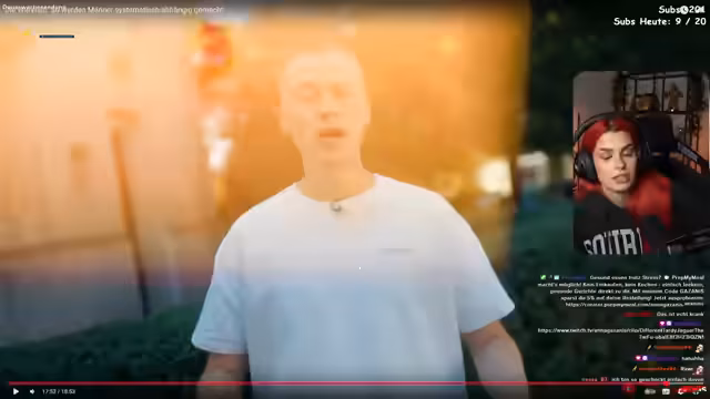 00:52:11Es wird ein Video über die Wahrheit, wie Männer systematisch abhängig gemacht werden, insbesondere im Zusammenhang mit Pornos, angekündigt. Es werden Statistiken über Pornosucht bei Männern und Frauen in Deutschland genannt. Die Streamerin spricht über ihre Recherchen und die Notwendigkeit von Partnern, die das Ganze mittragen. Snox wird als Partner vorgestellt, wobei die Vorteile ihrer Socken und Boxershorts hervorgehoben werden, wie z.B. das Silikonpad bei den Füßlingen, der Schweißstreifen bei den Sneaker-Socken und der weiche Bund bei den Boxershorts. Es wird ein Rabattcode (willtarget20) für Snox angeboten. Die Streamerin trifft sich in Leipzig mit einem Mann, der von sich selbst sagt, dass er pornosüchtig ist und seit Jahren in einem Online-Forum darüber schreibt. Er sagt, dass er seitdem kaum noch rausgeht, dass er nächtelang Pornos schaut und dass das Material, das er schaut, auch immer härter wird. Er berichtet, dass er mit 12, 13 Jahren damit angefangen hat und dass Pornos für ihn eine Art Flucht waren.