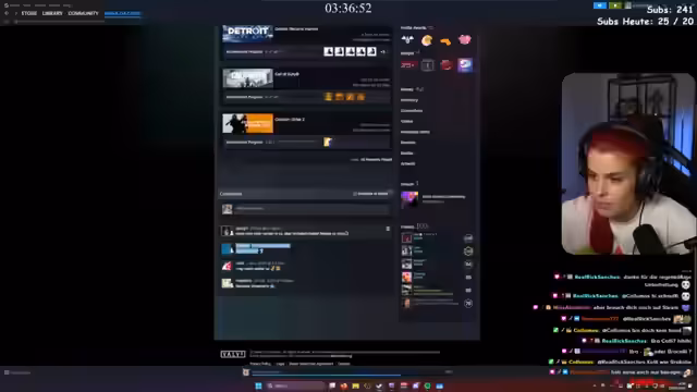 00:09:52Nach der Rückkehr werden verschiedene Spiele gespielt, darunter Detroit: Become Human und Counter-Strike. Parallel dazu teilt die Streamerin persönliche Updates, wie den Heilungsprozess ihrer Hand und die Behandlung einer allergischen Reaktion. Ihre Gedanken kreisen stark um den bevorstehenden Thailand-Aufenthalt, den sie als Arbeitsurlaub bezeichnet. Sie spricht über mögliche Streaming-Orte, wie den Big Buddha, und über ihre Vorlieben für Aktivitäten wie Schnorcheln und Surfen, zeigt aber auch Respekt vor den dortigen Bedingungen wie der hohen Luftfeuchtigkeit.