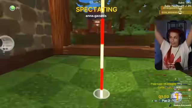 06:34:03Das Spiel beginnt, und die Spieler interagieren intensiv. Es kommt zu zahlreichen Kollisionen zwischen den Golfbällen, wobei die Spieler sich gegenseitig aus dem Spiel rausschießen. Die Runden sind geprägt von humorvollen Kommentaren, Strategieüberlegungen und teilweise frustrierenden Spielerlebnissen. Die Streamerin ist oft hinten in der Rangliste und sucht nach Wegen, aufzuholen.