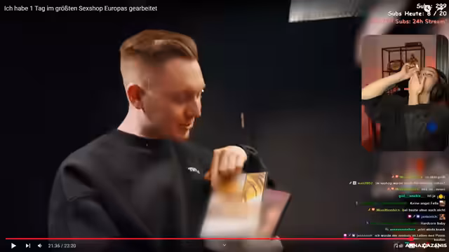 03:50:44Der Stream beginnt mit einer Besichtigung eines europaweit bekannten Sexshops. Zuerst werden Fetischartikel wie ein Kettenhemd und ein Sklavenparkplatz gezeigt, der von Dominas genutzt wird. Anschließend geht es in die BDSM-Abteilung, wo Elektrospielzeuge, insbesondere ein Gerät, das Stromschläge abgibt, ausprobiert und demonstriert wird. Im Anschluss daran werden verschiedene BDSM- und Hardcore-Pornos vorgestellt, wobei der Fokus auf historischen, klinischen und Folter-Themen liegt, die von der Streamerin als teilweise verstörend beschrieben werden.