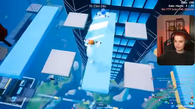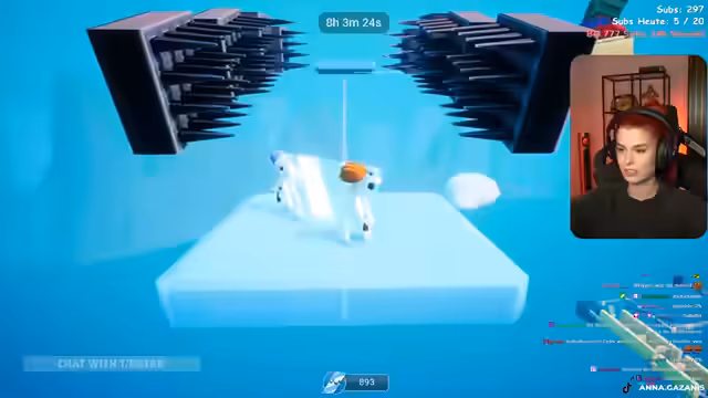 01:51:46Die nächste Phase des Spiels erfordert das Merken und Umsetzen von Farbsequenzen. Das Glas fährt über verschiedene Plattformen, die in den Farben blau, pink und rot leuchten. Die Streamerin muss die Reihenfolge der Farben erkennen und entsprechend handeln, um weiterzukommen. Dies erfordert volle Konzentration und schnelle Reaktion. Die Streamerin versucht, sich die Reihenfolge zu notieren, was jedoch durch das rutschige Eis erschwert wird. Es kommt zu Fehlern, die sie zurückwerfen.