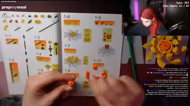 01:15:52Anna Gazannis beginnt mit dem Bau eines LEGO-Blumenstraußes, der aus vielen kleinen Teilen besteht. Während sie baut, unterhält sie sich über verschiedene Alltags- und Streaming-Themen. Sie spricht über ihre Lippen, die sie als kaputt bezeichnet, und kündigt an, mehr Wasser zu trinken. Der Chat wird dazu ermutigt, ihr Feedback zum Licht zu geben. Anna erwähnt ihre Pläne, mehr 'Box Content' zu machen, spricht über TwitchCon Rotterdam im Juni, bei der sie teilnehmen wird, und äußert sich positiv über ein anstehendes, nicht genaues Projekt, an dem sie zu 95% beteiligt ist und das im Juni gedreht wird.