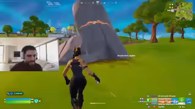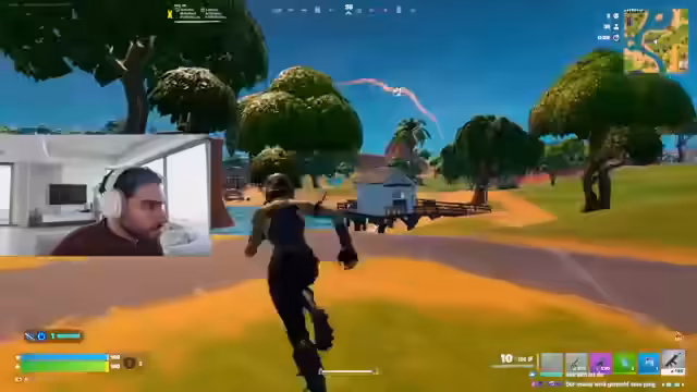 03:32:00Der Stream beginnt mit Fokus auf das Fortnite-Spiel. Der Streamer spielt intensiv und versucht, Kills zu erzielen. Er kommentiert seine Aktionen und die seiner Gegner, wobei er besonders beeindruckt von seinem eigenen Aim ist. Ein wiederkehrendes Problem ist ein Bug, bei dem er die Waffe nicht feuert, was ihn das Leben kostet. Der Streamer äußert Frustration über seine Waffenwahl und den Verlust einer vielversprechenden Runde. Ziel ist es, gut abzuschneiden und eine unterhaltsame Runde zu gestalten, auch wenn das Ergebnis oft knapp und unglücklich ist.