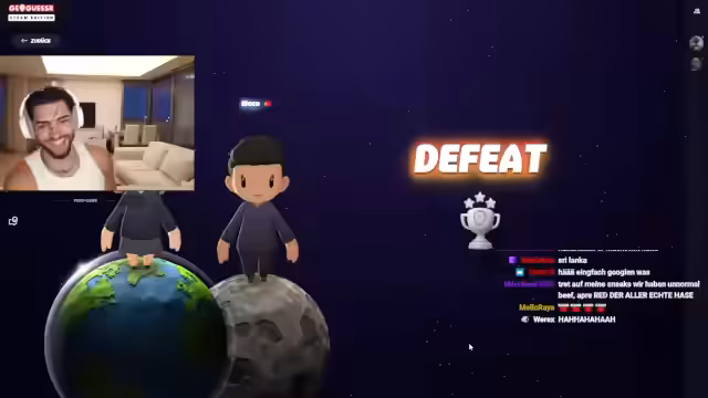 00:52:32Nach einer spontanen Idee starten der Streamer und sein Gast Asi ein Duell im Spiel GeoGuessr über Steam. Das Ziel ist es, anhand von Google-Street-View-Bildern den exakten Ort der Weltkarte zu erraten. Das Duell verläuft chaotisch und unterhaltsam, da der Streamer und sein Gast die Spielmechanik zunächst nicht verstehen und wild spekulieren. Trotz oder gerade wegen der häufigen Fehleinschätzungen und technischen Schwierigkeiten entwickelt sich das Spiel zu einem witzigen Highlight des Streams, bei dem sie sich auch gegenseitig provozieren und supporten.
