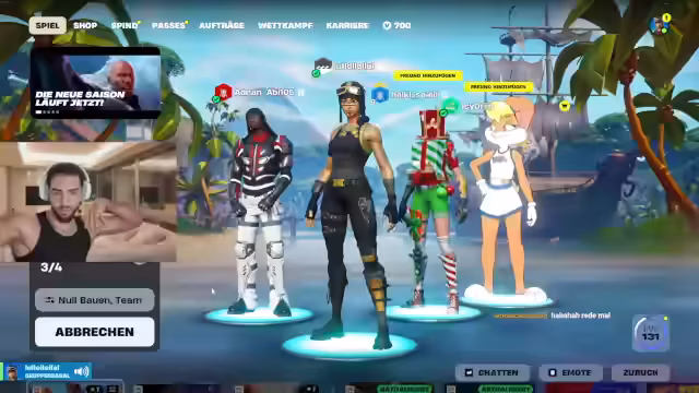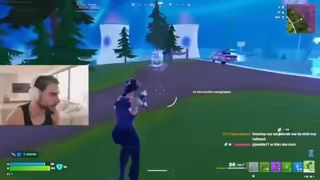 03:03:56Der Streamer verabschiedet sich zunächst und kündigt ein neues Fortnite-Zocken an. Nach einigen technischen Schwierigkeiten, die schnell behoben werden, startet das Spiel. Zuerst wird das neue Spielprinzip der neuen Season getestet, bei dem man für jeden Kill 50 Leben erhält. Nach anfänglichem Unverständnis stellt sich der Streamer auf das neue Setup ein und beginnt intensiver zu zocken.