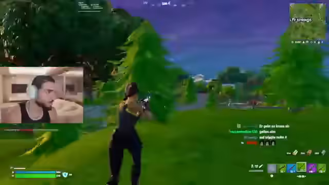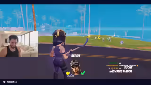 04:11:12Das Spiel beginnt mit einer schnellen und hektischen Landung in einer Lobby, die als leicht und botenhaft beschrieben wird. Der Fokus liegt auf dem sofortigen Sammeln von Waffen und Ausrüstung. Der Spieler sammelt eine Goldene Pumpe, eine Zwillingspistole und nutzt ein Hoverboard, um sich schnell fortzubewegen. Es gelingt ihm, eine Person auszuschalten und erste Kills zu erzielen, was einen zufriedenen „20er-Bombe“-Rettungsversuch auslöst. Die anfängliche Hektik wird durch Missverständnisse mit einem Gegner namens Adnan unterbrochen, der als „Godega“ betitelt wird, was zu einem kurzen verbalen Schlagabtausch führt.