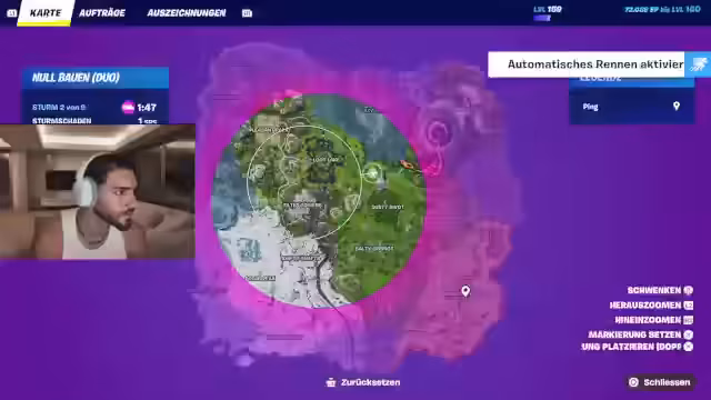 03:00:31Der Stream wechselt zu einem neuen Spielmodus, dem Solo-Birdes-Duo-Modus. Das Landungsgelände wird als "Paradise-Mobol" beschrieben. Das Gameplay ist jedoch wieder von Frustration geprägt, da der Streamer nicht optimal landet und gute Items verpasst. Die Gegner als „Sweats“ beschrieben, zeigen ein hohes Skilllevel, und es treten wieder technische Probleme mit Lag und dem Internet auf, die das Spielerlebnis stark beeinträchtigen.
