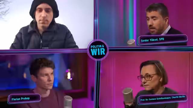 00:07:40Als Gäste werden Professor Dr. Carmen Scheibenbogen, Immunologin und Long-Covid-Forscherin an der Charité, und Serdar Yüksel, SPD-Politiker und Mitglied des Bundestags, vorgestellt. Beide sind eingeladen, ihre persönlichen Eindrücke von der Pandemiezeit zu teilen. Der Moderator betont die Wichtigkeit der Zuschauerbeteiligung und ruft auf, dass sich Personen mit persönlichen Erfahrungen wie Long Covid oder Impffolgen in den Stream schalten sollen, um ihre Geschichten zu teilen und Fragen an die Experten zu stellen.