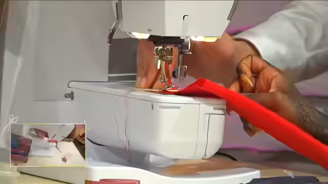 03:05:46Das Näh beginnt mit dem Zusammennähen der Stoffenden zu einem Tunnel. Dabei wird darauf geachtet, dass der Stoff sich nicht verzieht, besonders da er dehnbar ist. Es wird eher zu wenige als zu viele Nadeln verwendet, um Löcher im Stoff zu vermeiden. Die Designerin demonstriert, wie die Nahtzugabe (0,5 cm) eingehalten wird, indem das Füßchen der Nähmaschine als Messhilfe dient. Die Nähte werden am Anfang und Ende verriegelt, damit sie sich nicht auftrennen. Das fertige Haarband wird schließlich durchgestülpt und die offene Kante wird mit der Nähmaschine oder per Hand vernäht.