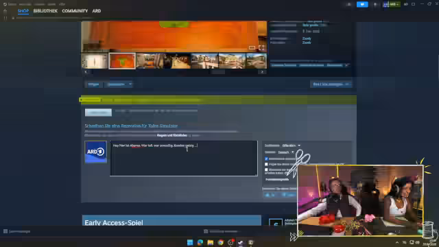 04:02:00Die Gastspielerin testet den Schneider-Simulator und empfindet ihn als sehr realistisch und stressig, vergleichbar mit der echten Schneiderarbeit. Sie schreibt eine offizielle Bewertung für Steam, in der sie den Simulator als 'tolle, aber stressige' Erfahrung beschreibt. Die Simulator-Kunden werden als geizig empfunden, was sich ähnlich wie in der Realität anfühlt. Die Designerin äußert, dass sie sich durch das Streamer-Erlebnis wie eine echte Designerin gefühlt hat, obwohl sie nicht als Gaming-Maus ausgebildet wurde.