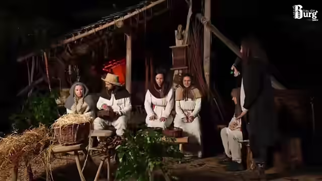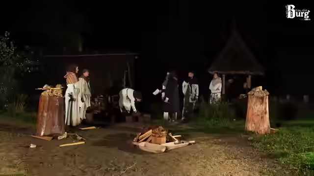03:42:46Es wird demonstriert, wie man im Mittelalter ohne moderne Hilfsmittel Feuer machte. Dabei kommen verschiedene Zundermaterialien wie Baumpilz und Pflanzenfasern zum Einsatz. Es wird erklärt, dass der Stahl und nicht der Feuerstein die Funken erzeugt. Des Weiteren werden verschiedene Arten von Kerzen und Lichtquellen vorgestellt, darunter gezogene und gerollte Wachskerzen, Wachsstöcke, Kienspan, Binsenlichter und Talglichter. Kienspan, harzhaltiges Nagelholz, war die billigste Lichtquelle, rauchte aber stark. Talglichter aus Rindertalg hatten einen schlechten Ruf, stanken aber nicht, wenn der Talg sauber war. Wachskerzen waren teurer und wurden oft Kirchen gespendet.