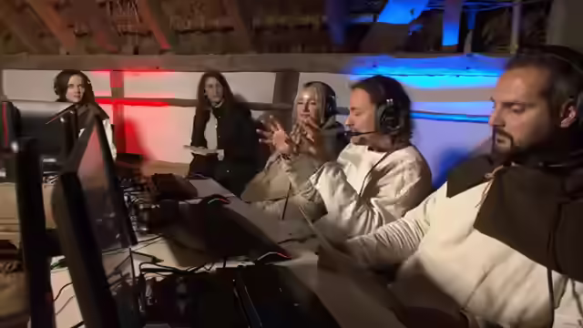 02:20:04Beide Teams haben gebuzzert, aber Team Krab hat einen Fehler gemacht und eine Mauer zu viel gebaut. Team Byte hat den Bauplan erfolgreich abgeschlossen. Es gibt eine Minute Verlängerung aufgrund eines Bugs. Die Ressourcen werden resettet, die Teams leveln ihre Fähigkeiten auf. Am Ende der Runde hat Team Byte einen Bauplan geschafft, Team Krab war kurz vor der Fertigstellung des zweiten. Team Byte hat zwei Baupläne geschafft. Der Punktestand beträgt 2 zu 3 für Team Byte. Es werden Tipps für die nächste Runde ausgetauscht. Team Krab empfiehlt, am Anfang zwei Minuten zu warten und die Kühe zu beobachten, um sich in das Spiel hineinzuversetzen. Team Byte empfiehlt, am Anfang abzubauen, um das Skill-Level zu erhöhen und mehr ins Inventar packen zu können. Es wird über die Aufteilung der Aufgaben diskutiert. Coppelius wird als Mittelalter-Experte vorgestellt. Die Teams haben sich auf ein Quiz vorbereitet und sich über Dynastien informiert. Abschließend wird eine coole IRL-Challenge angekündigt, bei der es um Flechtwerk und Korbflechterei gehen wird.