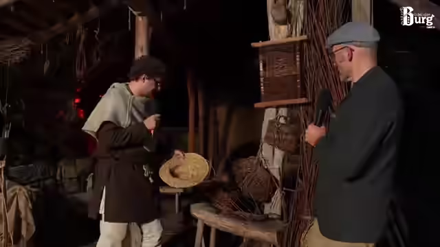02:32:13Die Korbherstellung ist eine uralte Technik, die auch im Mittelalter eine wichtige Rolle spielte. Anders als man vielleicht denkt, waren Körbe auf Baustellen unverzichtbar für den Transport von Materialien. Im Vergleich zu aufwendigeren Alternativen wie Leinensäcken oder Holzeimern, ist die Korbherstellung relativ simpel, da Weide schnell wächst und leicht zu verarbeiten ist. Der Prozess beginnt mit einem Boden aus drei miteinander verbundenen Hölzern, die dann aufgespalten und verflochten werden. Anschließend werden Weiden eingesteckt, um die Höhe zu erreichen. Ein fertiger Korb erhält durch die Rumpfkimme seine Form, wobei man zwischen bauchigen, geraden oder nach außen geformten Körben wählen kann. Das Wandgeflecht besteht meist aus einer einzigen Weidenschicht, wobei ungeschälte Weide bevorzugt wird. Ein Standboden schützt den Korb vor Feuchtigkeit und sorgt für Stabilität. Reparaturen sind einfach möglich, was die Lebensdauer der Körbe verlängert. Im Frühmittelalter war die Korbherstellung eine typische Winterarbeit, um Körbe für den Sommer vorzubereiten. Verschiedene Muster und Flechttechniken ermöglichten individuelle Designs. Neben Körben wurden auch Hüte aus Stroh oder Gras gefertigt, wobei Strohhüte besonders robust waren und Grashüte mit Bast vernäht wurden. Die benötigten Weiden werden meist selbst geerntet und vor der Verarbeitung getrocknet und gewässert.