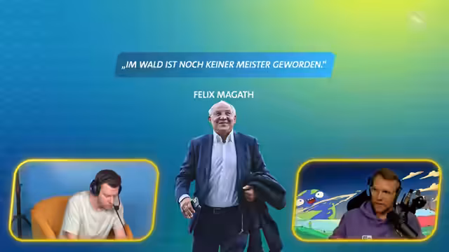 02:02:12Der Stream wechselt zu einem unterhaltsamen Zitate-Quiz, bei dem die Zuschauer und Nils erraten müssen, ob bestimmte Zitate echt oder erfunden sind. Es werden Zitate von Persönlichkeiten wie Hermann Gerland, Sami Khedira und Uli Hoeneß präsentiert, die für viel Gelächter und Überraschungen sorgen, insbesondere als sich herausstellt, dass einige vermeintlich echte Zitate erfunden waren. Anschließend folgt ein Blind Ranking der Maskottchen verschiedener Fußballvereine, darunter Emma vom BVB, Bernie von Bayern, Fritzle vom VfB Stuttgart und Dino Hermann vom HSV. Nils und der Chat bewerten die Maskottchen nach Aussehen, Passung zum Verein und Charisma. Dino Hermann wird dabei einstimmig auf Platz eins gesetzt, während Bernie von Bayern auf den letzten Platz landet. Die Diskussion über Fritzle, das Krokodil des VfB Stuttgart, führt zu einer interessanten Enthüllung: Das Maskottchen und sein Name wurden 1992 durch eine Fanabstimmung gewählt, ohne einen tieferen historischen Hintergrund.