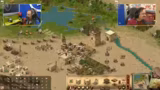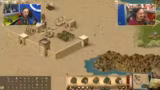 00:22:19Andreas beginnt die Mission mit 2000 Münzen und konzentriert sich zunächst auf den Aufbau der Wirtschaft. Er errichtet sofort eine Kornspeicher, baut dann eine Mühle, eine Bäckerei und Hütten, um mehr Bevölkerung zu bekommen. Anschließend startet er die Produktion von Brot, das er auf dem Markt verkauft, um Kapital zu akkumulieren. Gleichzeitig muss er seine Burg gegen einen frühen Angriff des Gegners verteidigen, der eine schnelle Expansion erschwert.