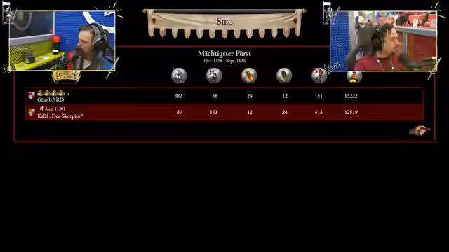01:22:34Während des intensiven Multiplayer-Spiels erscheint der Maskottchen-Bernd das Brot unerwartet im Studio. Die Ablenkung durch den prominenten Gast sorgt für Chaos, und der Streamer macht ihn später für seine unglückliche Spielleistung verantwortlich. Mit Händen und Augen versucht Bernd das Brot, Stronghold zu spielen, was denkwürdige Bilder liefert. Nach dem Auftritt von Bernd das Brot nimmt das Spiel einen unglücklichen Verlauf, und Andreas stellt humorvoll fest, dass Bernd für seine Niederlage schuld sei.