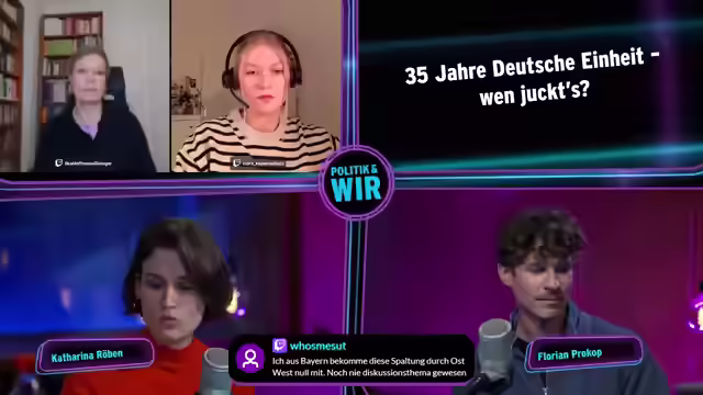 00:10:42Der Stream beginnt mit einer herzlichen Begrüßung auf dem ARD-Kanal anlässlich des Tages der Deutschen Einheit. Katharina Röhm vom SWR und Florian Prokop vom RBB moderieren gemeinsam und betonen die Ost-West-Kooperation. Das Thema des heutigen Mixtalks ist '35 Jahre Deutsche Einheit – wen juckt's?'. Es wird das Publikum nach aktiven Erinnerungen an die Wiedervereinigung gefragt und auf eine Bundesweib-Reportage in der ARD Mediathek hingewiesen. Zuschauer können sich per Anklingeln-Button live in die Diskussion einschalten und Fragen an die Gäste stellen. Der Fokus liegt auf der aktuellen Bedeutung der Wiedervereinigung und den damit verbundenen Gefühlen und Diskussionen, anstatt sich ausschließlich auf die Vergangenheit zu konzentrieren. Es werden Bilder aus der Zeit des Mauerfalls gezeigt, um die Emotionen und die Euphorie dieser Zeit zu vermitteln und die Zuschauer zur Teilnahme am Gespräch anzuregen. Die Sendung möchte ergründen, inwiefern die Folgen der Wiedervereinigung noch relevant sind und was der Tag der Deutschen Einheit für die Menschen bedeutet.