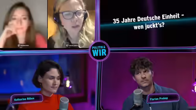 00:10:42Der ARD-Kanal startet einen besonderen Twitch-Stream anlässlich des Tags der Deutschen Einheit mit einer Ost-West-Kooperation und Doppelmoderation. Katharina Rö vom SWR und Florian Prokop vom RBB begrüßen die Zuschauer und stellen das Thema '35 Jahre Deutsche Einheit, wen juckt's?' vor. Sie erwähnen die Kooperation mit Politik & Wir und Mixtalk und fragen die Zuschauer nach persönlichen Erinnerungen an die Wiedervereinigung.