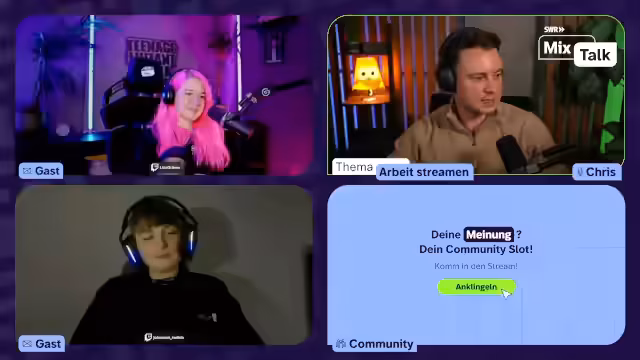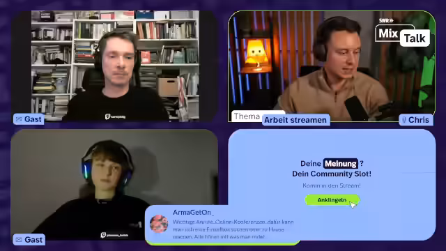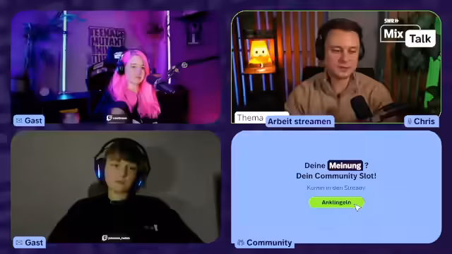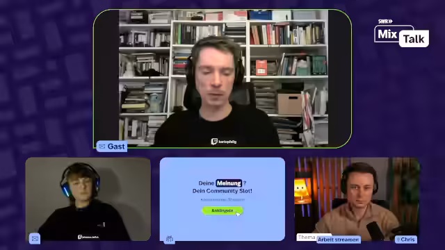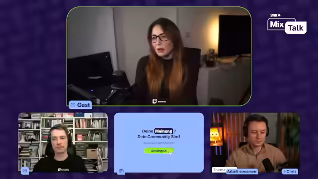 00:10:03Der Mixtalk beginnt mit der Begrüßung der Zuschauer und der Vorstellung des heutigen Themas: Coworking-Streams. Es wird erklärt, dass Coworking-Streams Live-Übertragungen sind, bei denen Menschen ihrer Arbeit nachgehen und Zuschauer entweder mitarbeiten, lernen oder einfach nur zusehen können. Der Moderator fragt die Community, ob sie solche Streams nutzen und ob diese zur Produktivität beitragen. Er selbst hat positive Erfahrungen gemacht und empfindet sie als angenehme Alternative zu Pausen im Homeoffice. Die erste Gästin, Liza Grimm, eine Fantasy-Buchautorin, die seit 2020 Coworking-Streams auf Twitch macht, wird vorgestellt. Sie berichtet von ihren Anfängen, als sie ihren Bildschirm zeigte, was sie jedoch schnell wieder aufgab, da es ihren kreativen Prozess störte. Heute zeigt sie einen Timer und ihre To-Do-Liste, aber nicht mehr ihre aktuelle Arbeit oder private Dokumente wie die Steuererklärung.