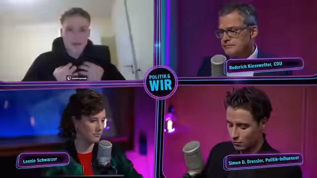 00:10:04Der ARD Community Talk "Politik & Wir" wird mit dem Thema der möglichen Rückkehr der Wehrpflicht eröffnet. Der Fokus liegt auf der Frage des Engagements der Jugend und ob eine Verpflichtung notwendig ist, falls der freiwillige Wehrdienst nicht ausreicht. Gastgeber Simon David Dressler stellt sich als progressiver Populist vor, der gegen die Wehrpflicht argumentiert, während Bundestagsabgeordneter Roderich Kiesewetter (CDU) für mehr gesellschaftliche Engagement aus Einsicht plädiert.