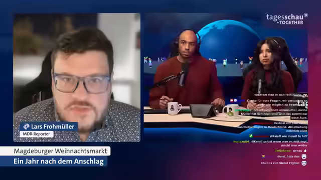 01:29:47Der Stream wendet sich dem Thema Weihnachtsmärkte und deren Sicherheitslage zu. Lars Frohmüller berichtet über den Magdeburger Weihnachtsmarkt, dessen Eröffnung bis zuletzt auf der Kippe stand. Das Sicherheitskonzept wurde erneut überprüft und musste nachgeschärft werden, insbesondere bezüglich der Zufahrtssperren und der Anzahl des Sicherheitspersonals. Dies geschieht ein Jahr nach dem Anschlag auf den Magdeburger Weihnachtsmarkt. Lars Frohmüller schildert die Ereignisse des Anschlags, bei dem der Täter mit einem Fahrzeug über das Gelände fuhr, über 300 Passanten verletzte und sechs Menschen tötete. Die Fahrt dauerte 64 Sekunden, fühlte sich für die Betroffenen jedoch wie eine Ewigkeit an. Der Prozess gegen den mutmaßlichen Täter hat begonnen, und die Details des Geschehens werden erneut aufgerollt, was für die Prozessbeteiligten eine schwere Belastung darstellt. Lars war selbst vor Ort und musste das Leid miterleben.
