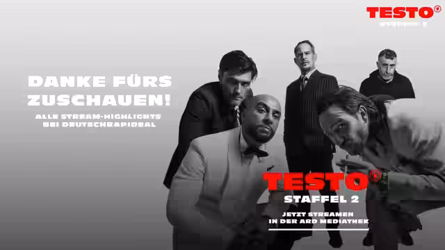 00:14:57Der ARD Twitch Stream beginnt mit der exklusiven Premiere der zweiten Staffel der Serie TESTO. Moderator Simon begrüßt die Hauptdarsteller Kida Ramadan und Veysel Abi und stellt den Stream als eine gemeinsame Watchparty mit Einblicken und Insights in die neue Staffel vor. Die erste Folge der Staffel ist seit dem 25.04. in der ARD Mediathek verfügbar und wird um 20:20 Uhr im Ersten ausgestrahlt.
