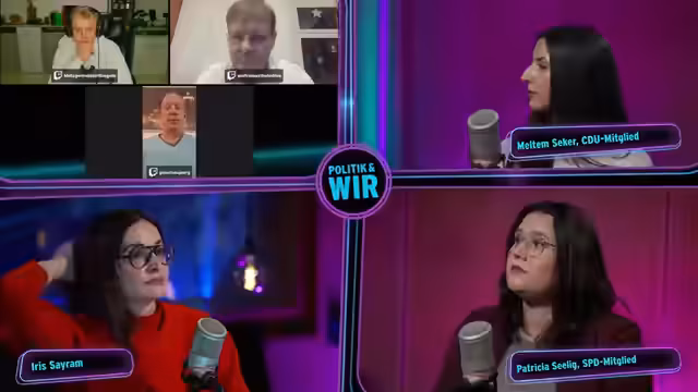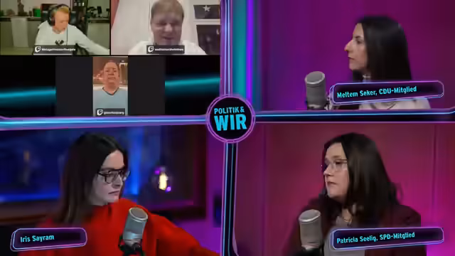 00:14:55Der Stream beginnt mit der Begrüßung der Community und der Ankündigung, die ARD-Sendung "Arena" mit Bundeskanzler Friedrich Merz gemeinsam zu verfolgen. Es wird ein "Kanzler-Check" angekündigt, bei dem die Stimmung der Zuschauer mittels einer Heatmap gemessen wird. Anschließend stellt die Moderation die beiden Hauptgäste vor: Meltem, eine junge CDU-Mitgliedern mit Migrationshintergrund, und Patricia, eine junge SPD-Kommunalpolitikerin. Beide beschreiben ihren Weg in die Politik und ihre Werte.