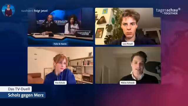 Merz vs. Scholz: unsere Watch Party zum TV-Duell mit Levi Penell, hedgefonds.henning und Eva Schulz I tagesschau together