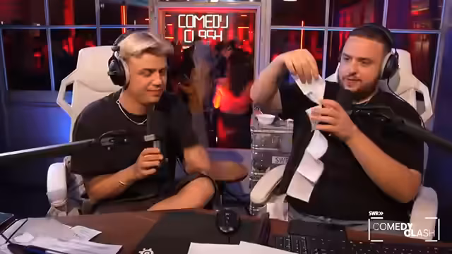 00:15:04Die Moderatoren wechseln in den Studio- und Bühnenbereich, um mit dem Publikum zu interagieren. Sie führen ein spontanes Crowdwork durch und sprechen Zuschauer an, unter anderem ein Paar, das sich am dritten Tag Kennenlernens geheiratet hat. Dies führt zu humorvollen Reaktionen im Publikum. @papaplatte erklärt, dass dies die Perspektive sei, die ein Comedian später auf der Bühne hätte. Die Moderatoren übergaben die Show dann offiziell.