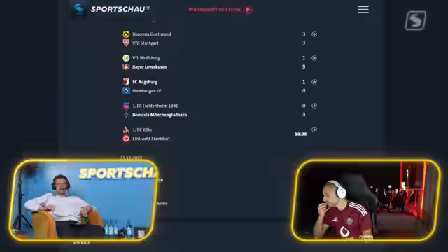00:04:55Malte Völz begrüßt die Zuschauer zu einer neuen Ausgabe von Sportschau Live auf dem ARD Twitch-KKanal. Er kündigt einen spannenden Bundesliga-Spieltag an, der unter anderem die Partien Bayern München gegen SC Freiburg, Borussia Dortmund gegen VfB Stuttgart, Wolfsburg gegen Bayer 04 Leverkusen und Augsburg gegen HSV umfasst. Besonders hervorgehoben wird das Topspiel zwischen dem BVB und dem VfB. Zudem wird bekannt gegeben, dass E-Sportler MoAuba und der ehemalige Fußballprofi Benni Höwedes als Gäste im Stream dabei sein werden. Der Moderator erwähnt auch die Möglichkeit für Zuschauer, über Kanalpunkte Nachrichten zu senden, und spricht die bevorstehende Marke von 100.000 Followern an, die mit einer Konfetti-Kanone gefeiert werden soll. Aktuelle Diskussionen im Chat drehen sich um die Leistung des BVB und die bevorstehende Jahreshauptversammlung.