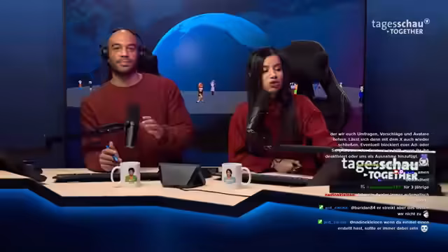 00:16:24Die Moderatoren leiten zu den Hauptthemen des Abends über: Erstens, der Konflikt zwischen den USA und Venezuela, zu dem Korrespondentinnen vor Ort Fragen beantworten werden. Zweitens, die neue AfD-Jugendorganisation „Generation Deutschland“ und der Einfluss von Jugendorganisationen auf Parteien. Der Stream wird nicht nur auf Twitch, sondern auch auf TikTok, Instagram, YouTube und in der ARD Mediathek übertragen. Ein „Special Guest“ namens Paxi, ein Faxgerät, wird für das Gewinnspiel vorgestellt. Die Community kann durch das Senden von Faxen oder Chatten Channel Points sammeln, um an der Verlosung der Susanne-Daubner-Tasse teilzunehmen. Die Moderatoren erklären auch die Funktion der Extensions, die es den Zuschauern ermöglichen, als Avatare im Stream aufzutauchen und ihr Outfit anzupassen. Es wird darauf hingewiesen, dass Kommentare auf TikTok und Instagram aufgrund von Hate-Kommentaren deaktiviert sind, und die Zuschauer ermutigt, sich auf Twitch oder YouTube zu beteiligen.