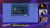 02:04:51Die Moderatoren präsentieren die fünf nominierten Spiele für die Overall-Kategorie: I hate this fucking car, Mind the Glitch, Potion Punch, I met her for coffee und das gerade ausgezeichnete Undertable. Sie betonen, dass die Bewertung unabhängig von den Einzelsiegern erfolgt war und die Entscheidung schwierig war, da alle Spiele eng beieinander lagen. Für die Overall-Kategorie gibt es sogar eine Laudatio aus Japan.