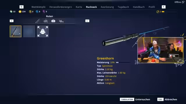 02:20:34Nach dem Test des ersten Simulators wechselt die Streamerin zu einem zweiten Spiel, dem 'Ultimative Fishing Simulator 2'. Sie stellt fest, dass dieses Spiel im Vergleich zum ersten erhebliche Nachteile hat. Die Grafik ist von geringerer Qualität und die Bedienung, insbesondere die Verwaltung der Ausrüstung und das Anbringen des Köders, wirkt deutlich umständlicher und unübersichtlicher. Der Versuch, einen Fisch zu fangen, endet zudem mit dem Bruch der Angelrute, was eine reale Gefahr beim Angeln aufzeigt, aber auch die Frustration im Spiel erhöht.