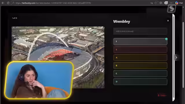 02:08:25Nach einer ersten Halbzeit mit vielen torlosen Spielen beginnen die Moderatoren ein interaktives Segment, eine sogenannte "Tierlist". Chat-Teilnehmer sollen verschiedene Stadien wie den Signal Iduna Park, das Wembley Stadium oder die Allianz Arena nach persönlicher Präferenz in die Kategorien S bis D einsortieren. Es kommt zu unterschiedlichen Meinungen und Diskussionen über den Charme, die Größe und die Atmosphäre der Stadien.
