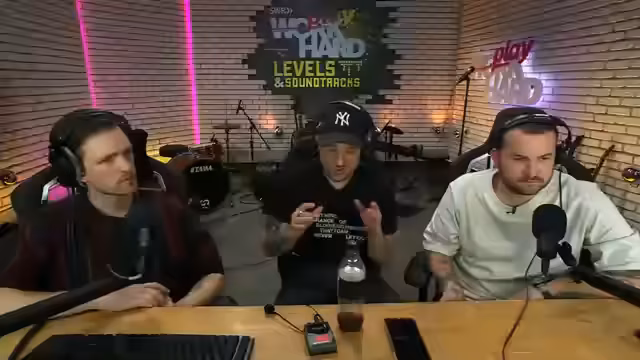 01:04:46Nach einem gescheiterten Song reflektieren die Teilnehmer über die Erfahrung aus Sicht von professionellen Musikern. Einer der Streamer stellt fest, dass es ihm schwerfällt, die Mechaniken des Spiels abstrakt zu verstehen, da er es mit seinem instrumentalen Hintergrund verbindet. Der Fokus verschiebt sich auf die Diskussion, dass das Spielen von Band Hero für einen Musiker anders ist als für einen normalen Spieler, da er auf Rhythmus und Takt statt auf Farbfelder achten muss.