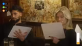 01:25:36Das Quizformat wechselt zu Multiple-Choice-Fragen. Die erste Frage nach dem Fußballverein von Ed Sheeran wird im Chat recherchiert, und Henke hat den richtigen Tipp. Bei der Frage nach dem Bauhausstil erhält Merle ihren ersten Punkt. Die Frage nach dem EU-Song wird kontrovers diskutiert; Henke nutzt seinen Telefonjoker und trifft mit 'Ode an die Freude' korrekt. Ein Faktencheck zur ersten YouTube-Persönlichkeit mit 100 Millionen Abonnenten (T-Series vs. PewDiePie) sorgt für Verwirrung, wird aber zugunsten von Henke entschieden und der Punktestand korrigiert.